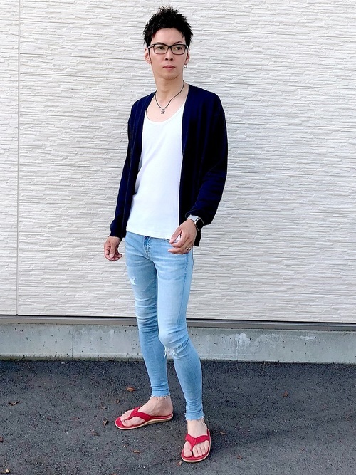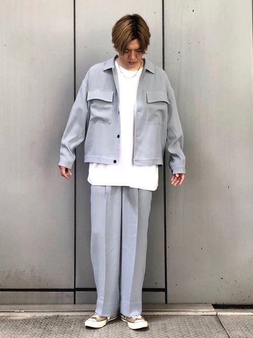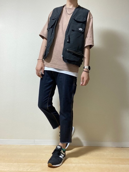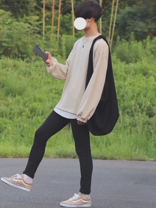 縦のレイヤードによりスタイルアップを発揮するには、スキニーパンツやデニムパンツといったスリムパンツを用いたほうが効果的です。他にもストレートが意識されたワイドパンツやスウェットパンツもスタイルアップに繋がるのでおすすめです。