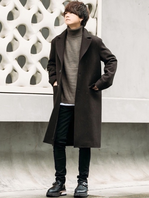 軽い着心地のチェスターコートはラフな装いから、きれいめな雰囲気を演出することも可能です。チェスターコートに合わせるインナーアイテムは比較的丈が短いタイプが多いと思うので、ロング丈Tシャツを重ね着ししっかりスタイルアップに繋げましょう。