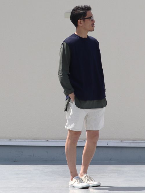 ベストは半袖の上でも長袖の上でも合わせやすいので、幅広いシーズンに対応できるアイテムですよ。