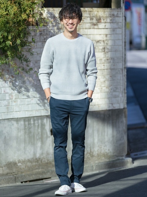 コットンニットはお手入れしやすく、さらっと着られるのが特徴です。レディースでも大人気ですが、メンズコーデにもおすすめなので、ぜひおしゃれな着こなしで取り入れてみてください。