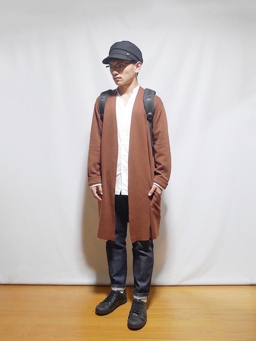 こちらはロングカーディガンを取り入れたコーデです。小物をブラックにまとめることで、統一感と締まりが出ています。