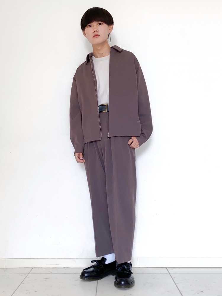 2タックでカジュアルになりすぎない、きれいめなシルエットが特徴のJUNRedの今季最新スラックス。股上が深めの設計なので、ゆったりとリラックスして履くことができます。同素材のアウターもあるので、簡単にセットアップコーデも叶い、便利なアイテムです。