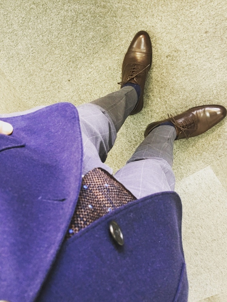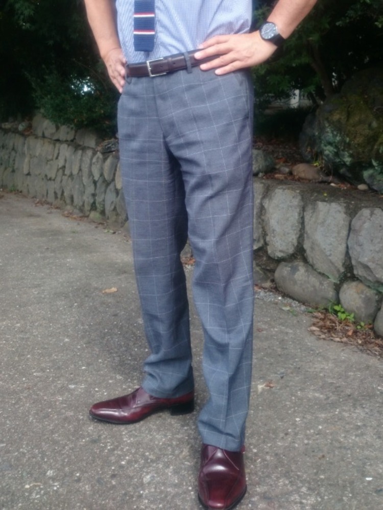 スラックスを裾上げした後に履く予定の靴を履きながら丈を調節すると、後で合わせてみた時に丈が短すぎた・長すぎたなんてこともなくなります。スニーカーなのか革靴なのか、普段履こうと思っている靴を持って合わせにいきましょう。