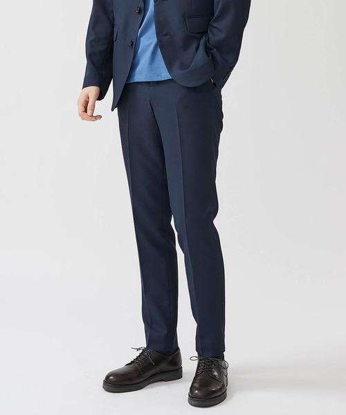 STUDIOUSのタイトテーパードイージースラックスは、セットアップも可能な商品展開。スラックスも、スタンダードでコーデに取り入れやすいデザインなので、毎日のコーデの幅が広がります。通常の素材の50%ほどの軽さで、通気性の良い素材でできているので、ずっと履いていても疲れにくく快適でしょう。