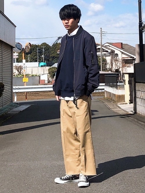 MA-1とワイドパンツは少し組み合わせが難しいと思われがちですが、このコーディネートをぜひ参考にしてください。