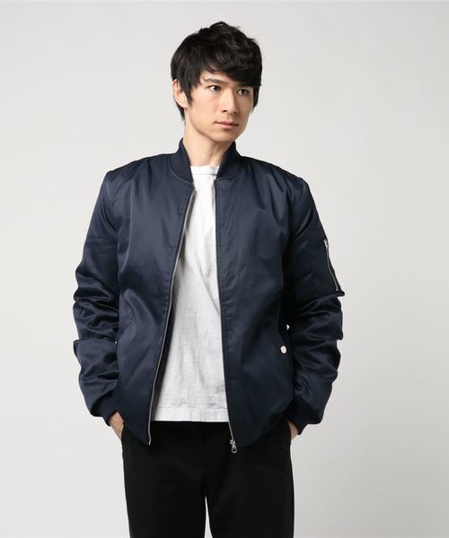 しかし、MA-1の人気カラーであるカーキを着ていると他の人と同じ着こなしになってしまうという悩みを抱えている方も多いと思います。そこでカジュアルでありつつも、大人の着こなしができるネイビーのMA-1で、他の人と差のつく着こなしをしましょう。