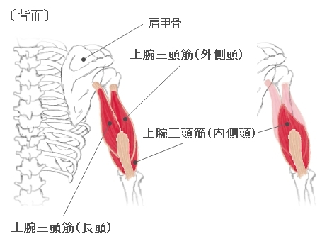 上腕三頭筋は腕の裏側にあり、通称『二の腕』とも言われる筋肉です。