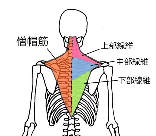 僧帽筋は首〜肩〜背中にかけてある筋肉で、肩こりを発症する筋肉はこの僧帽筋なのです。