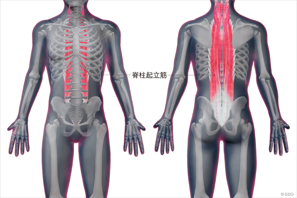 脊柱起立筋は体の背面の中心にある縦長の筋肉です。