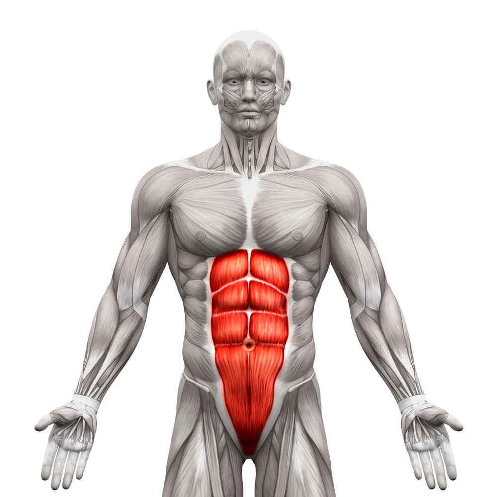 腹直筋は腹筋の中心部に位置しており、縦と横に線がある特徴があります。この線によって腹直筋は6個または8個に分かれて見えるのです。