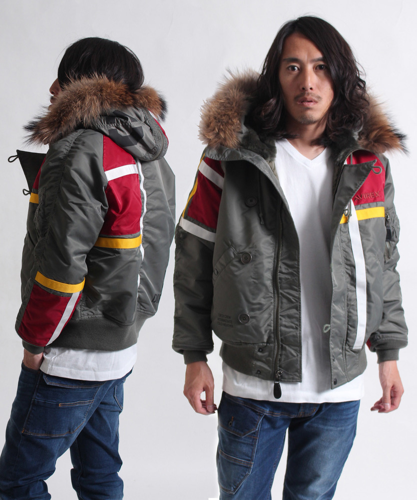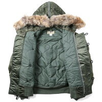 N-2Bは、アメリカ空軍が開発した寒冷地対応の飛行士用防寒ジャケットです。N-2Bの「B」は、冬用の意味合いがあります。カーキやブラックなどのカラーが多く、ファーのフードが付いているのが特徴。N-3と比較すると丈が短く設計されているので、動きやすいという利点も。厚手の生地で、基本的に袖と裾はリブニット素材になっています。
