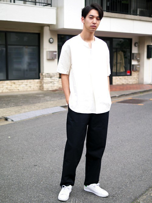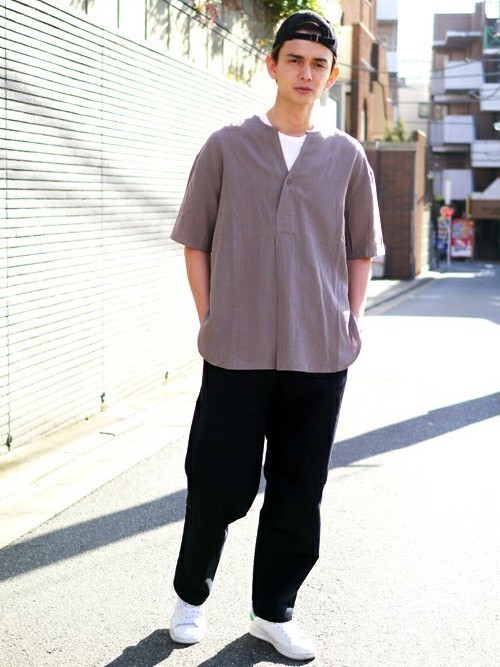 馴染みのあるセレクトショップであるSHIPSのオリジナルアイテムである、7分丈のスキッパーシャツです。最近ではスキッパーの意味合いも広くなり、このシャツは襟もとに切れ込みを入れたアイテムです。春夏に嬉しい清涼感があり、シルエットがゆったりめではありますが上品さも兼ねています。襟がバンドカラーなので抜け感もあり、様々なコーデに合うアイテムです。