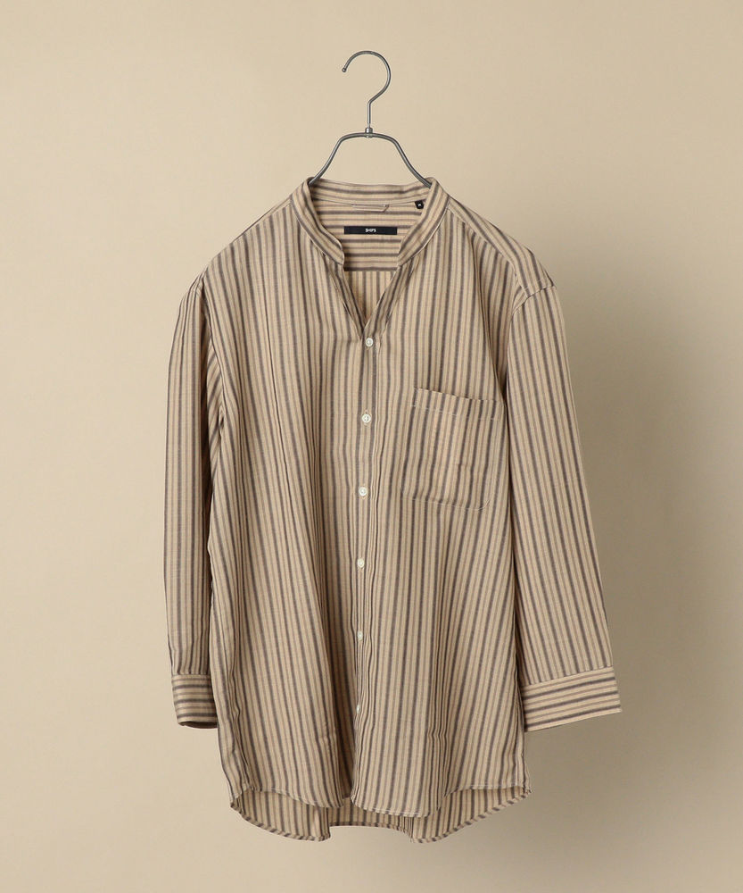 SHIPS 三者混ストライプバンドカラー スキッパー7スリーブシャツ