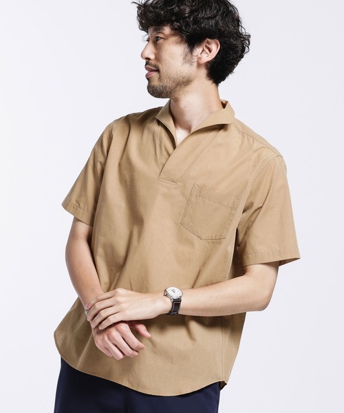 コスパがいいのが特徴のブランドであるSOCIAL WEARの、ゆったりとしたシルエットにベーシックな襟元のスキッパーシャツです。涼しく軽いのに型崩れがしにくいことが特徴で、ラフにもモードにも着こなしが効きます。