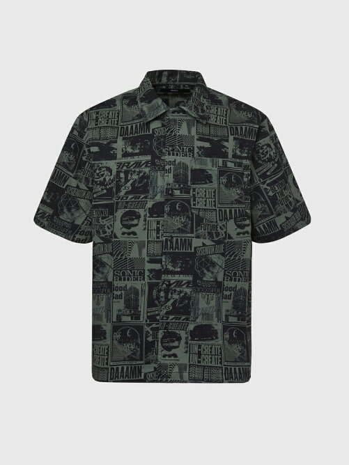 DIESEL メンズ 総柄 プリント ボウリングシャツ