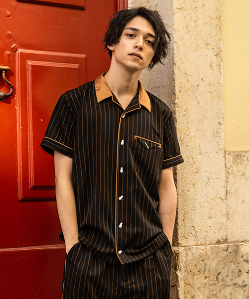CAMBIO ストレッチレーヨンパイピングクレリックボーリングシャツ