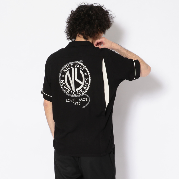 ライダースジャケットで有名なスコットからルード系に欠かせないボウリングシャツが出ました。レーヨン100%の定番のボウリングシャツは質感も50年代風。ヴィンテージ感を出すにはぴったりのアイテムです。