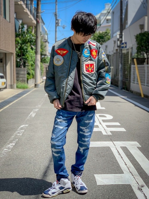 トップガン仕様のMA-1×ダメージパンツ