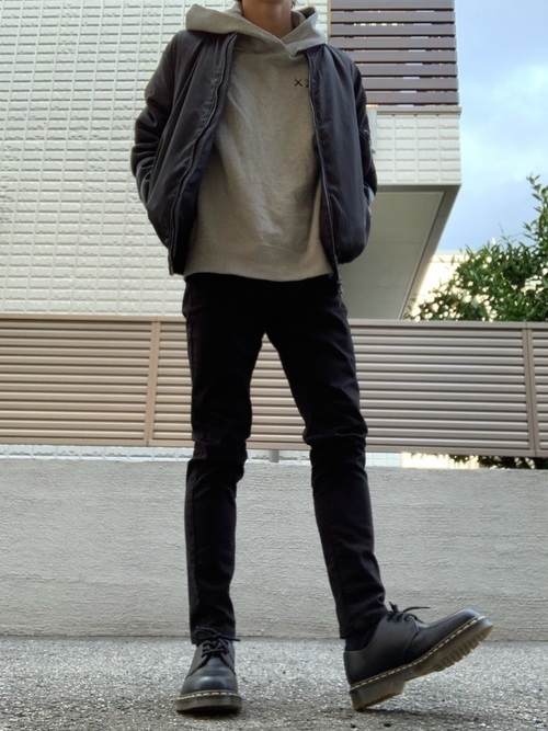 MA-1×パーカー×スリムパンツ