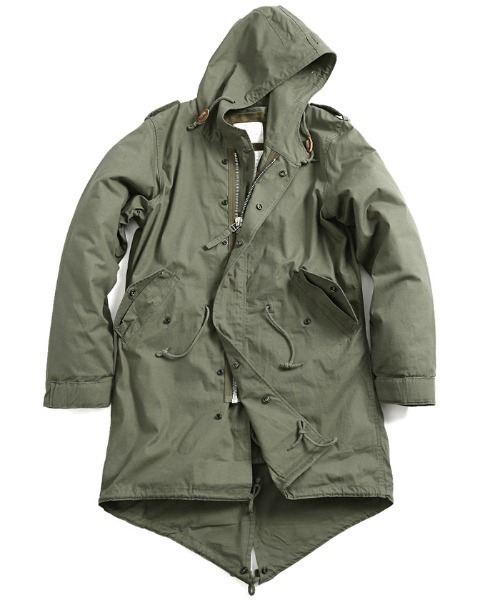 1951年に米軍が野戦用に羽織るミリタリーパーカーとして誕生したのがM-51。フィールドジャケットの上から羽織れるほどのゆったりとしたサイズに、フードがついていて、後ろ裾がフィッシュテールのデザインになっています。