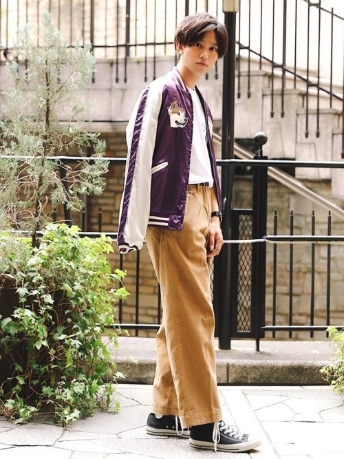 パープル系スカジャン×チノパン