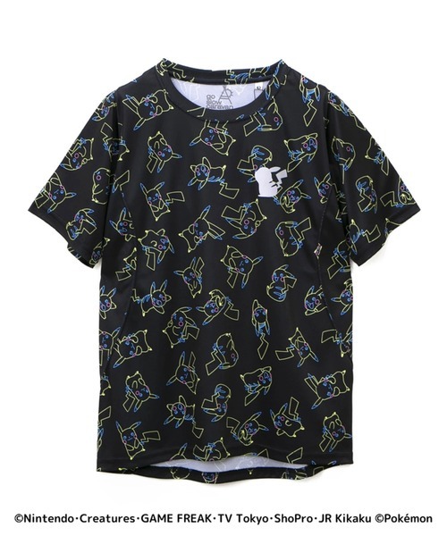 登山やキャンプ・野外フェスといったアウトドアシーン向けに遊び心満点な商品を展開しているブランド「go slow caravan(ゴースローキャラバン)」。こちらは、ポリエステル100%の吸水速乾Tシャツにピカチュウが総柄プリントされた商品になります。ベースカラーが黒なので、これなら大人が着ても十分お洒落ですよ。