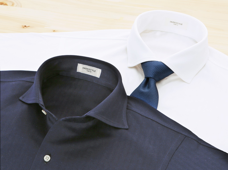 ワイシャツは襟のデザインによって雰囲気も変わります。ネクタイを付けるなら、定番の襟羽開きが70~90度のレギュラー、100~120度のワイドがよいでしょう。クールビスシーズンなどネクタイを付けないなら、襟羽開きが180度のホリゾンタルがおすすめです。