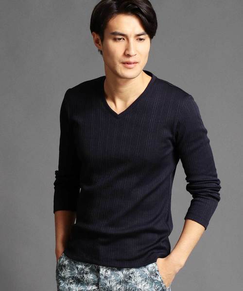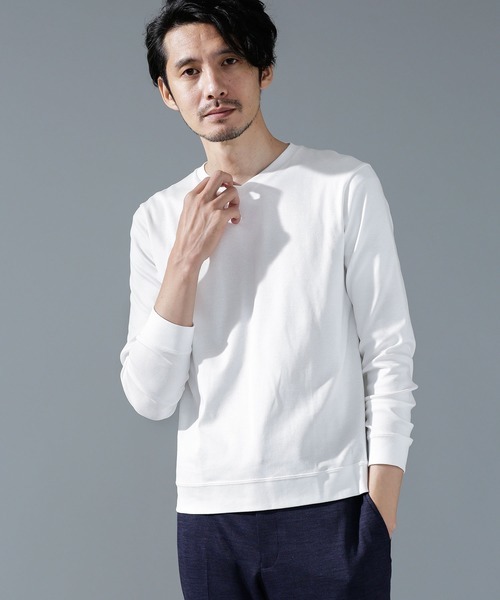 きれいめカジュアルなファッションが揃うブランド、ナノユニバースの長袖カットソーは、ビジネスシーンでも着れるようなフォーマルな要素を取り入れたオリジナルのデザインが特徴。首元はVネックで顔を小さくみせることができ、1着でかっこよく着こなすことができます。細身のシルエットもスタイリッシュでインナーとしても使えるアイテムです。