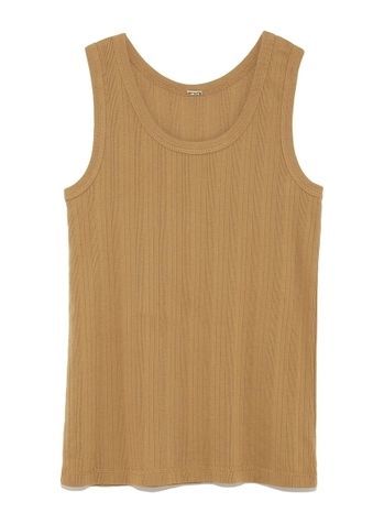 テレコはリブ編みの種類の1つで、凹凸のある見た目が特徴の伸縮性のある素材です。縦方向に溝のような模様が入っているのでスタイルをタイトに見せることができ、着心地の良さを長く楽しめるのが特徴です。カットソー以外には、インナーの素材としても多く使われています。