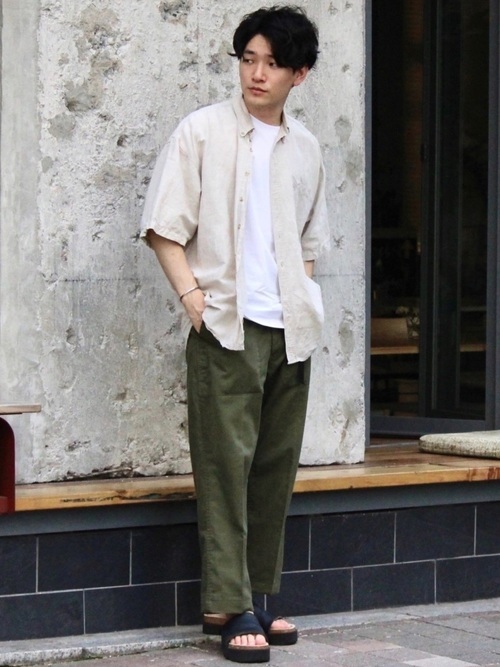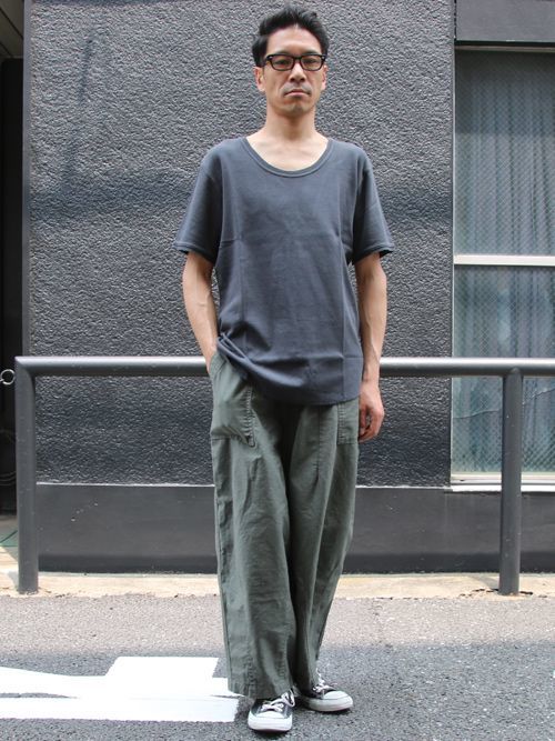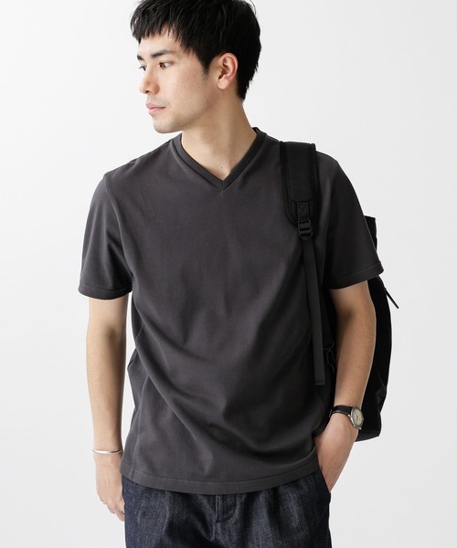 天竺織りでしっかりした作りが特徴の半袖カットソーは、シップスエニィという新しい日本のファッションブランドのものです。素材には丈夫なUSAコットンを使い、職人が丁寧に染め上げた味のあるデザインも特徴的です。ハーフパンツやサンダルと合わせることで、夏におすすめの爽やかな着こなしに。