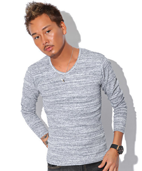 杢柄(もくがら)とは濃い色と薄い色が混ざった糸を使用して作られ、色が統一しておらずムラのある色合いが特徴の柄です。杢柄は無地のカットソーよりも上品でこなれ感を演出でき、1着でもかっこいい大人の着こなしができるアイテムとして人気があります。