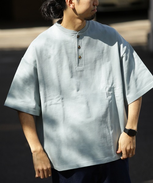 クルーネックの首元にボタンが付いている形をヘンリーネックと言います。ボタンが付いているデザインはシャツをイメージさせますがシャツほど堅苦しくなく、きれいめカジュアルなスタイルに着こなすことができるアイテムです。