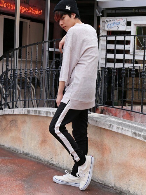 カットソー×トラックパンツ