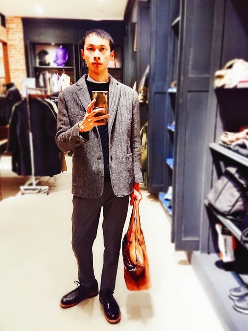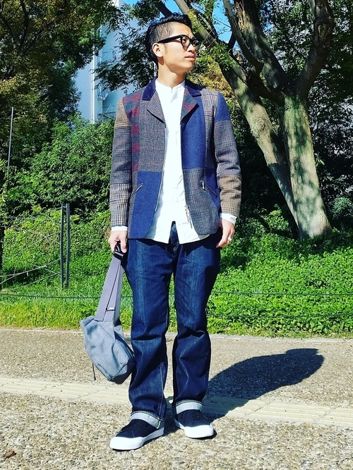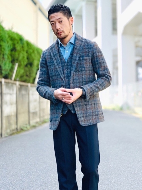 大きめにデザインされたチェック柄がポップで親しみやすい印象を与えてくれます。インナーにノーネクタイのシャツを合わせることでジャケット特有の固い印象ではなく、崩しすぎない程度の上品なカジュアルさが出ます。冬だけではなく、秋にも着たくなるような暖かみのあるコーディネートです。