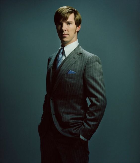 ベネディクト・カンバーバッチ演じるピーター・ギラムは、映画の舞台である70年代らしいシルエットのメンズスーツが特徴です。肩先は反り上がったコンケーブショルダーのジャケットや、フレアシルエットのパンツを着用しています。こちらもブランドは公表されていませんが、70年代風の英国式スーツと明るいブルーのネクタイが真似る際のポイントです。
