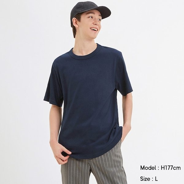 ジーユーからも使えるネイビーTシャツが販売されています。サイズ展開も豊富ですが、値段が安いのが嬉しい1枚です。胴体部分に縫い目が無く、ストレスフリーで着られます。インナーにも1枚で着ても様になる万能Tシャツです。