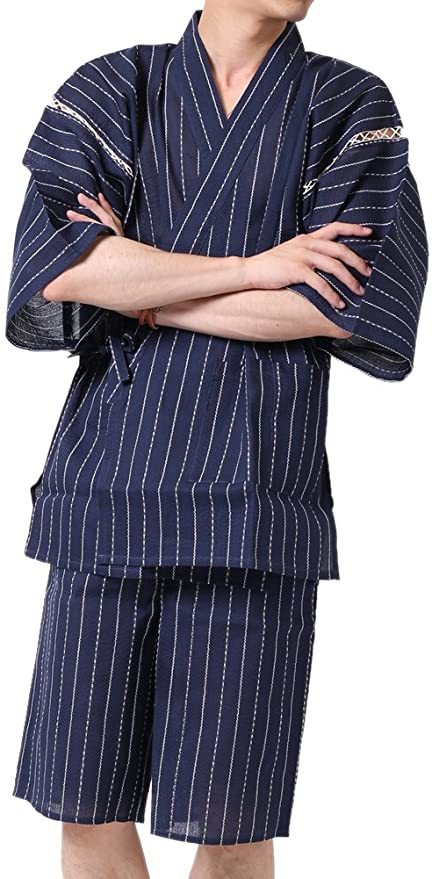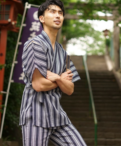 値段も手ごろな上下セットのメンズ向け甚平です。素材は綿100%で肌触りも抜群。各色にセンスがいい和テイストのストライプやチェックなどの柄が入っています。ストライプのものが多いので体型が気になる人にもおすすめです。生地は大分薄手なので気になる方はインナーを着用すると良いでしょう。