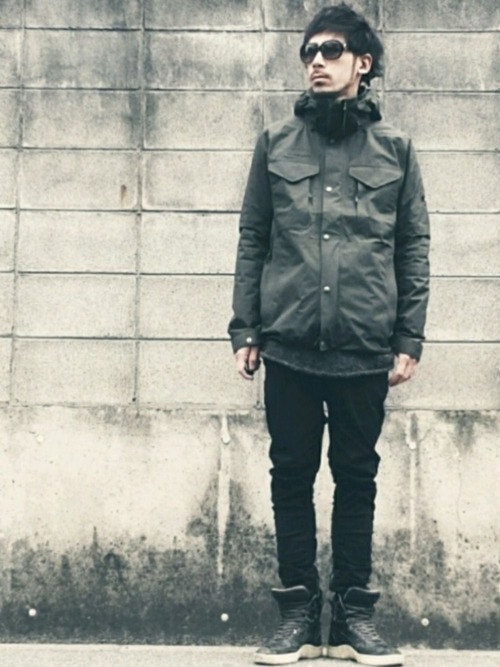 ハードシェルジャケット(黒)×スニーカー(黒)【ハードシェルジャケットのメンズコーデ】
