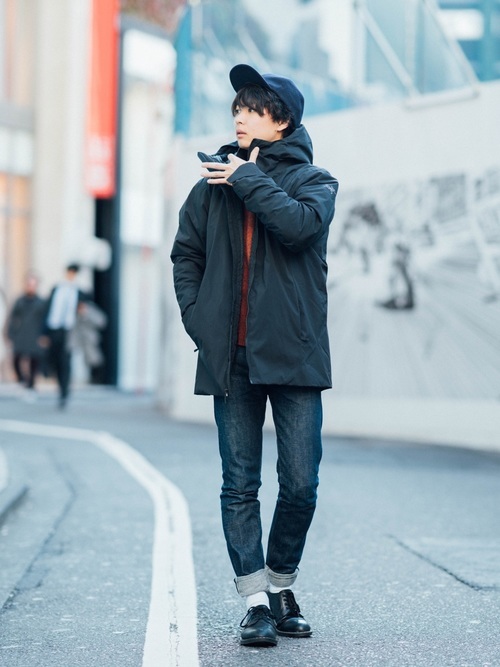 ハードシェルジャケット×デニムパンツ【ハードシェルジャケットのメンズコーデ】