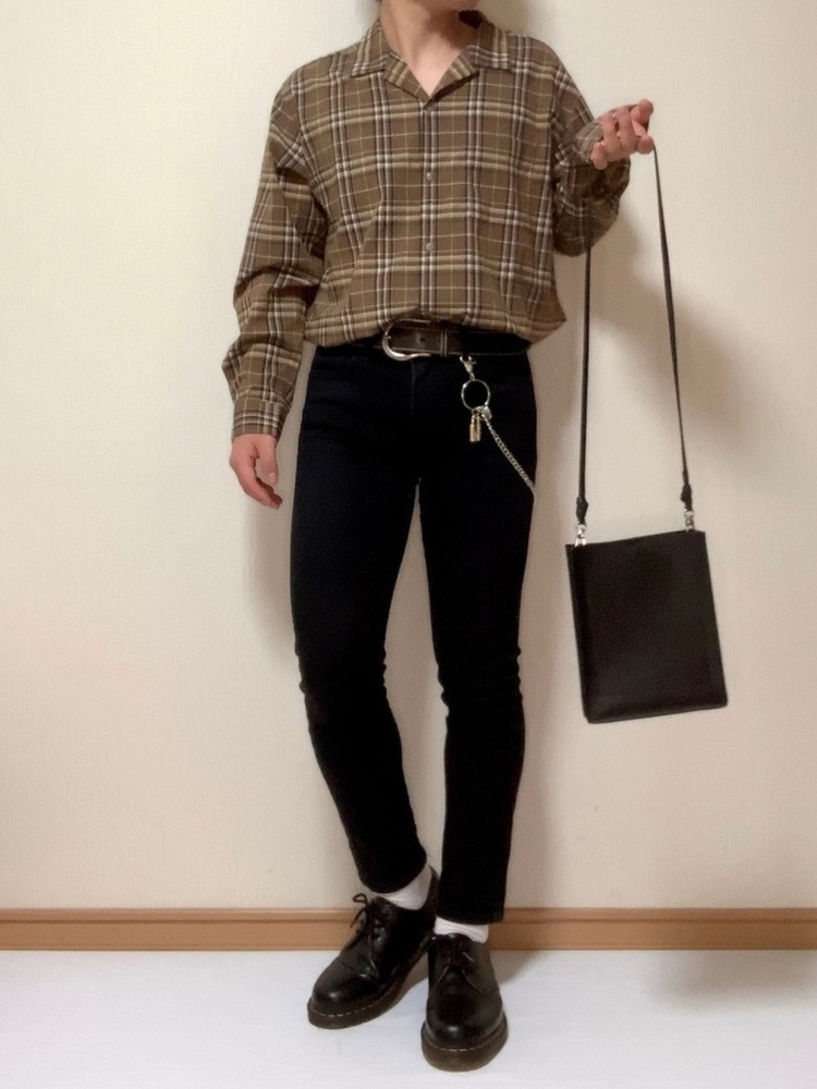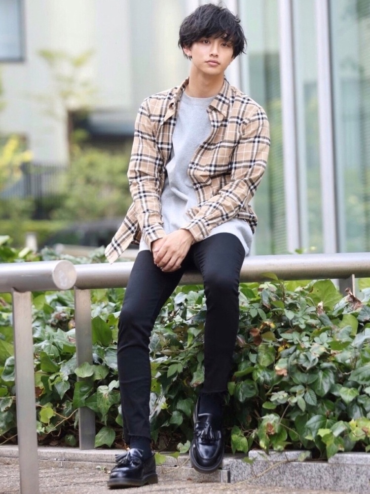 黒スキニーにチェックシャツを合わせたこのコーデは、王道のモテコーデです。中にシンプルなTシャツを合わせて無地の部分を多く見せることで、うるさすぎない印象になります。ベージュの色合いも涼しめな日にぴったり。インナーは無難に白でも、少しグレーで遊んでみても合います。靴でスタイリッシュな雰囲気も少し出すことがポイントです。