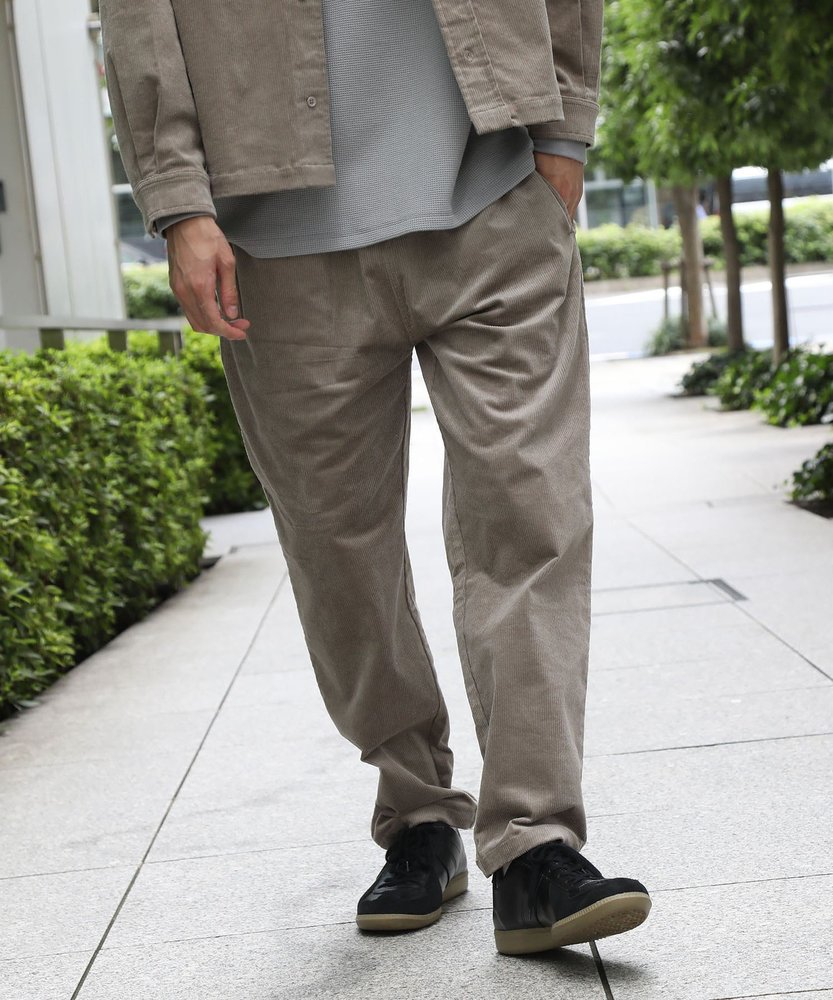 ザショップティーケーのこちらのコーデュロイパンツは、トレンドを抑えたシェフパンツのデザインで、ラフでゆるい着こなしが特徴。ダサい着こなしにならないように、ややテーパードになっているのでスタイル良くおしゃれなコーデが楽しめます。色は全部で6色から選べるので、手持ちのアイテムに合うコーデュロイパンツを選ぶのも良いですね。