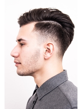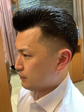 本格的なリーゼントスタイルです。両サイドの髪はツーブロックにしています。アイパーで仕上げたことで、髪の丸みがきれいに表現できていますね。ジェルでしっかり固めてあげると、髪型が崩れずにすみます。