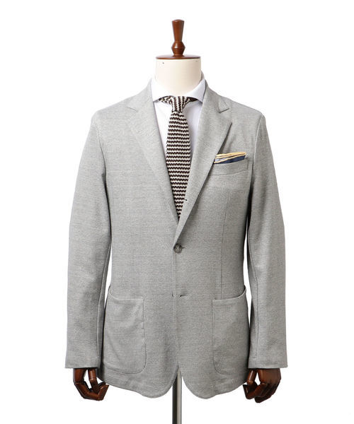 綿と麻で作られたジャージー素材を使ったジャージージャケットです。ジャージー素材の伸縮性を活かしてリラックスした着心地を実現しています。カラーは明るめのグレーですがかっちりした作りなのでビジネスシーンでも問題なく着られるでしょう。