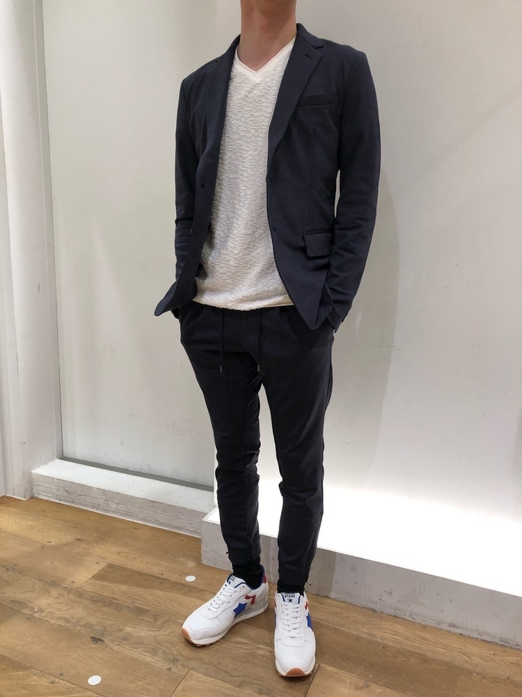 ビジネスカジュアルスタイルを提案しているブランドB:MINGのNOMADのジャージージャケット。着心地が良く、ドレッシーなデザインがおしゃれです。カラーもネイビーとグレーでビジネスシーンにもおすすめ。上品な印象を与えてくれるので、大人っぽいデートにも着ていけます。