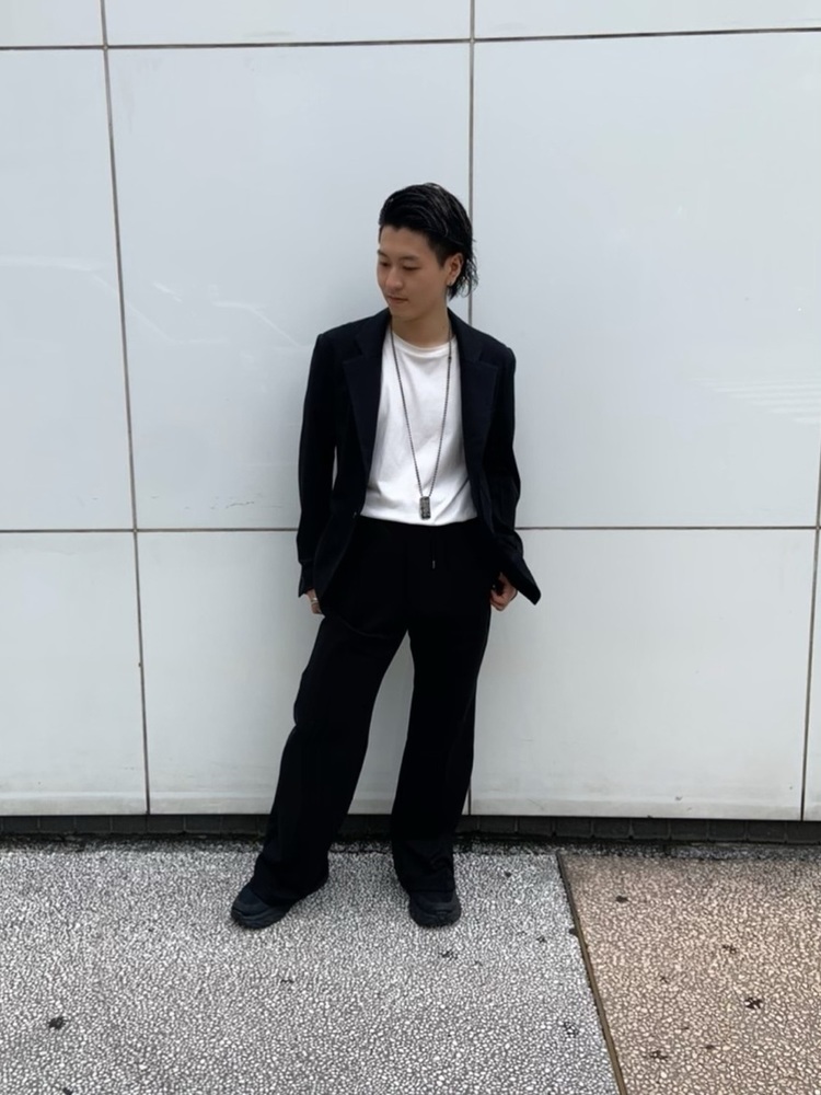 ブラック系のジャージージャケットとパンツにホワイトTシャツを合わせたメンズコーデです。カラーがモノクロなためシックな雰囲気。また、ネックレスによりこなれたおしゃれ感を感じられます。