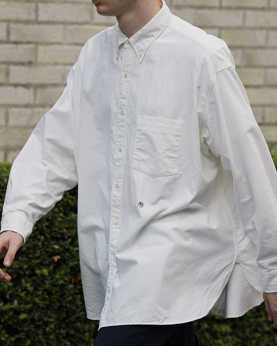 ノーカラーシャツはバンドカラーシャツに似ていますが、襟がまったくないものを指します。イメージとしては画家のスモックのような襟。首元がすっきりと見える上に、程よくラフなイメージを作ることができます。さらに、前を開けて着用すれば羽織シャツとしても活躍します。