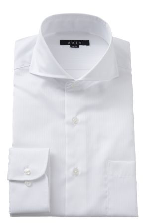 ワイドカラーシャツは襟の開き方がレギュラーカラーシャツよりも少し広めにとられた形です。襟元が大きくなっているので首まわりや顔がすっきりして見えるのが特徴。スーツに合うのでビジネスにはもちろん、カジュアルにも着まわせます。