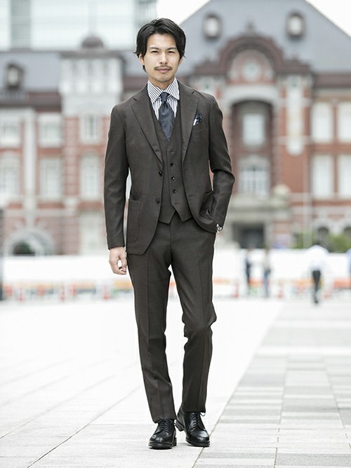 細身または小柄な男性にはナローショートカラーがおすすめです。襟の形が小さければ、それと比較して身頃が大きく見えるので、細身・小柄感を軽減できます。首が細すぎるという方にはドゥエボットーニもおすすめ。襟高があるので首の長さを緩和しつつ、襟元のボタンで重厚感を与えられます。