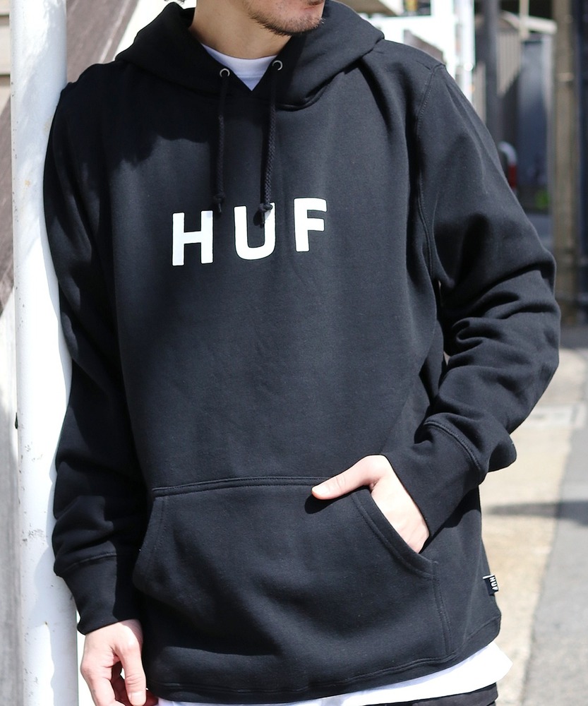 次にプルオーバーパーカーのコーデを見ていきましょう。プルオーバーパーカーは、一枚でもコーデの主役になります。中でも黒パーカーはどんなアウターとも好相性です。