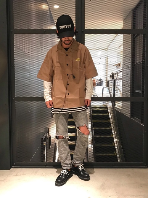 ダメージ加工が施されたグレージーンズとキャップを合わせたカジュアルストリートコーデです。ダメージ加工は自分でもリメイクできるので、おしゃれ上級者の方は好きなダメージ加工を施してみるのもよいでしょう。